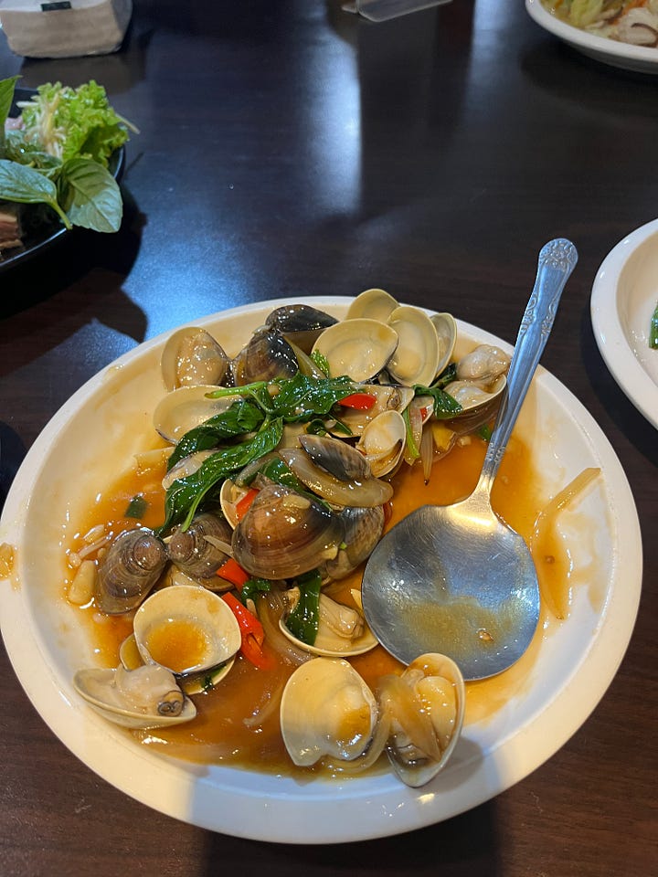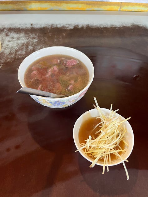 Raw beef cooked in scalding broth is a crazy start to the day