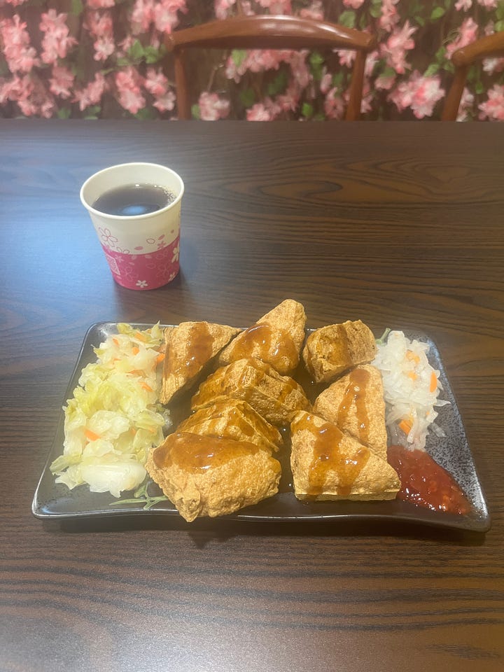 The weather in Luodong was pretty gross all week (can’t say I’m surprised at this point), but I managed to be fairly productive. On Monday, I got a stellar haircut from the Handsome King and managed to try two different new restaurants, one before and one after my cut. Both came highly recommended by my friend James, who did this same Fulbright program in Luodong last year. The spicy noodles had my eyes watering, and the stinky tofu was perfectly crispy— both will be in my regular rotation moving forward.